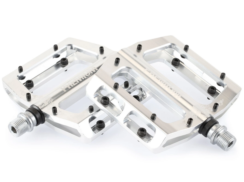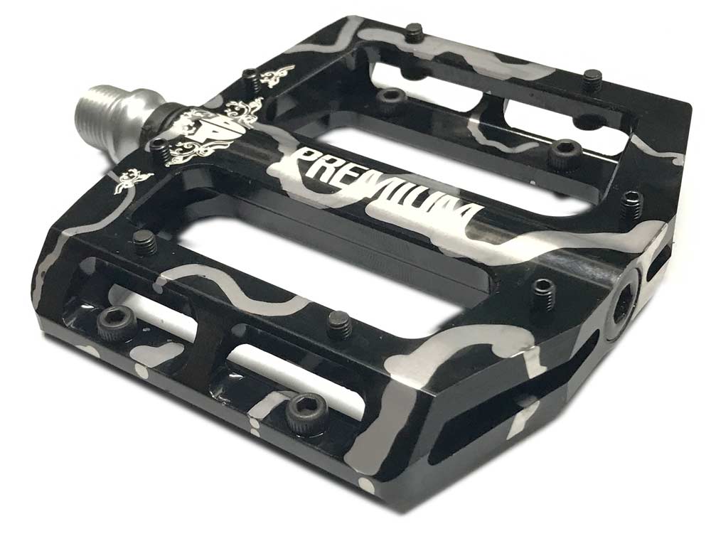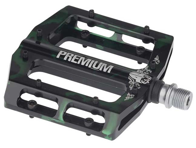 The Premium Slim Pedals are Extruded from CNC-machined 7-series alloy 14mm/17mm thickness use removable pins and weighs in at 16 oz a pair. Sealed bearing keep them solid and smooth. These pedals are great for park and dirt riding