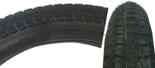 Knurled wide spread tread pattern gets great traction on trails and hard-packed dirt 40 PSI